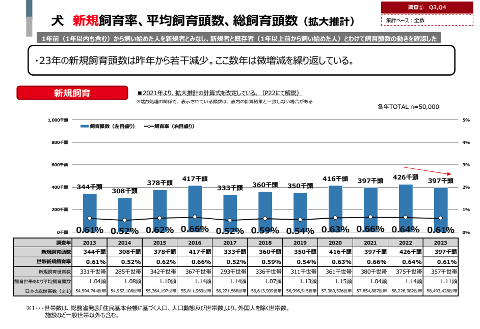 犬が2022年度426千頭→2023年度397千頭、